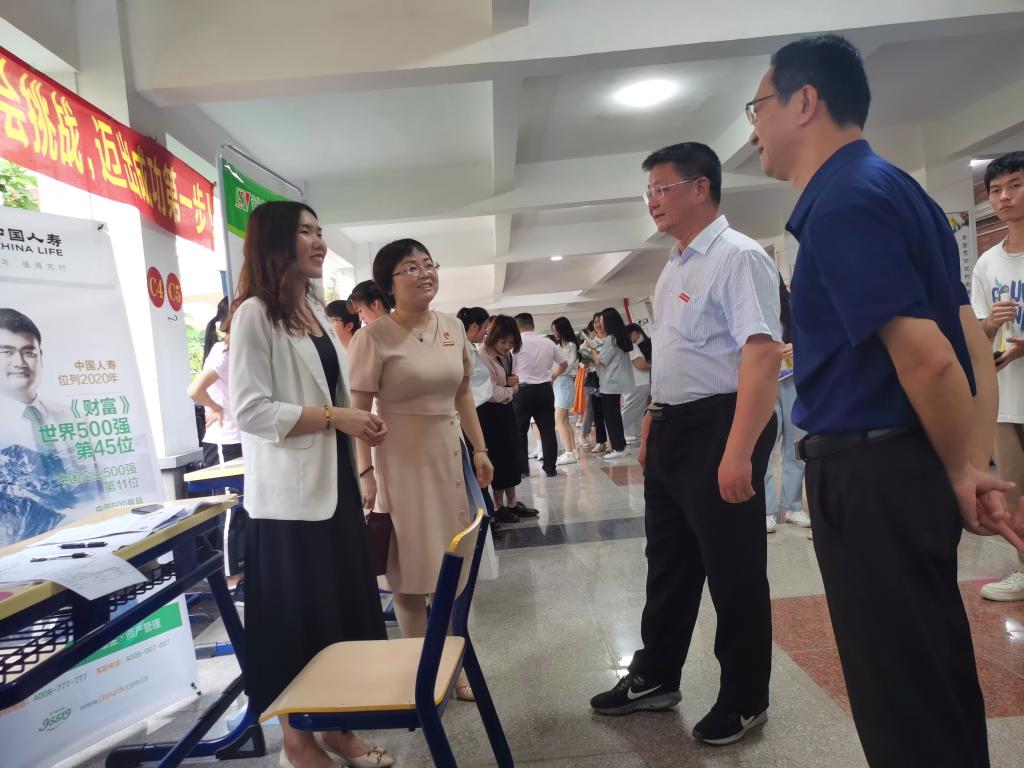 为深入贯彻落实党中央、国务院“六保“”六稳”工作任务,太阳成tyc7111cc集团经济管理系于2021年5月8日下午三点在公司博学楼一楼举办了春季专场招聘会。公司经理刘惠河、党委副书记朱镇生,员工处处长吴育清等莅临指导。