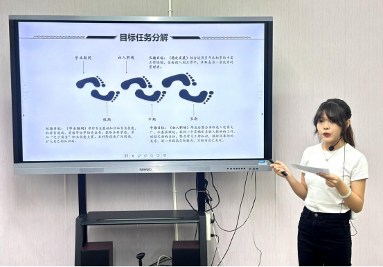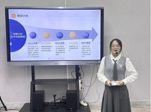 比赛伊始,主持人详细介绍了比赛规则,随后参赛选手按照顺序进行展示,14名选手风格各具特色,表现精彩纷呈。他们通过PPT展示的形式,围绕自我认知、职业环境分析、职业目标设定、实施策略、未来展望等方面对自己的职业生涯规划进行阐述。凭借深刻的自我剖析、合理的规划方案以及生动的现场表达,赢得评委和观众的高度评价。赛后,林蕙老师对选手的表现进行细致的点评,既肯定他们的亮点、优点,也指出不足之处,并结合当前就业形式,提出了可行性的建议。